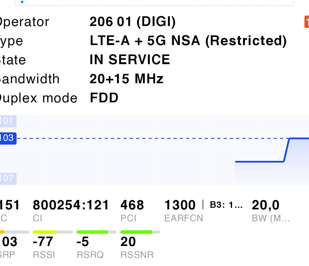 Daarna viel mijn netwerk even weg, waarna de naam wijzigde van 'DIGI' naar 'Digi BE' en sindsdien heb ik, bij mijn weten, geen 5G meer zien verschijnen.