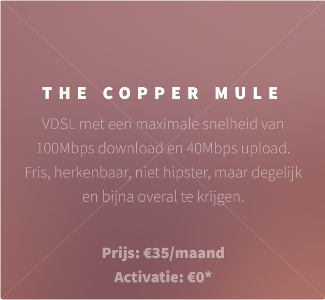 Enige reden dat ik nog niet weg ben, is de activatie kosten van 50 euro bij de concurrentie. Je krijgt dan wel meer dan dubbel zo snel VDSL nadien.