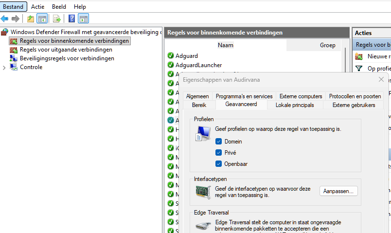 Ik heb Audirvana handmatig toegevoegd in de lijst van regels voor binnenkomende verbindingen en de pc herstart, maar nog blijft de foutmelding