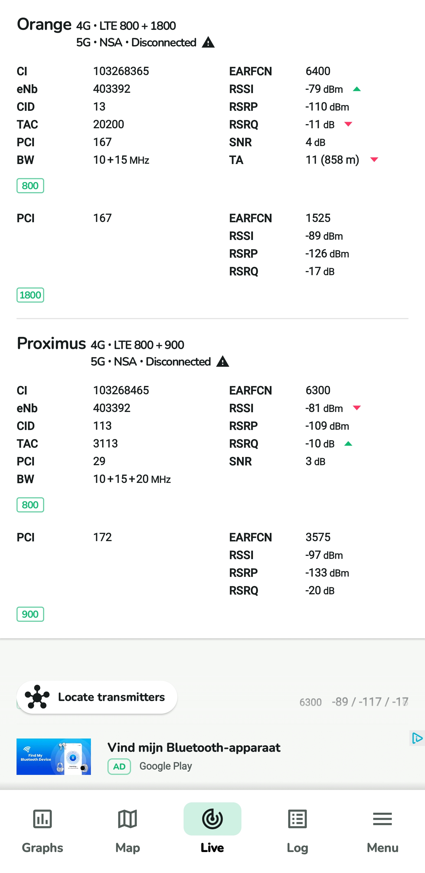 van welke aan te antenne zou je verbinding hebben gehadconexio schreef: 3 maanden geledenIk had gisteren iets gelijkaardigs voor toen we zaten te picknicken aan de zeesluis in Wintam, mijn gsm wisselde een paar keer tussen 1 streepje ontvangst en 5 streepjes. Nu zie ik dat er een Digi antenne staat aan de Beekdam in Kruibeke, het is volledig open veld daartussen en zo'n 2,5 km in vogelvlucht.telemans schreef: 3 maanden geleden ik Stond met mijn moto stil aan parking van Delhaize in Bredene ik had zicht op een groot flat gebouw waar antennes staan van Orange/Proximus gedeeld RAN 400463 59BDB. en dat met smartphone met een proximus sim in, ik schrok met hoedje toen naar het scherm van men smartphone keek met een DIGI sim enode b 502430.
