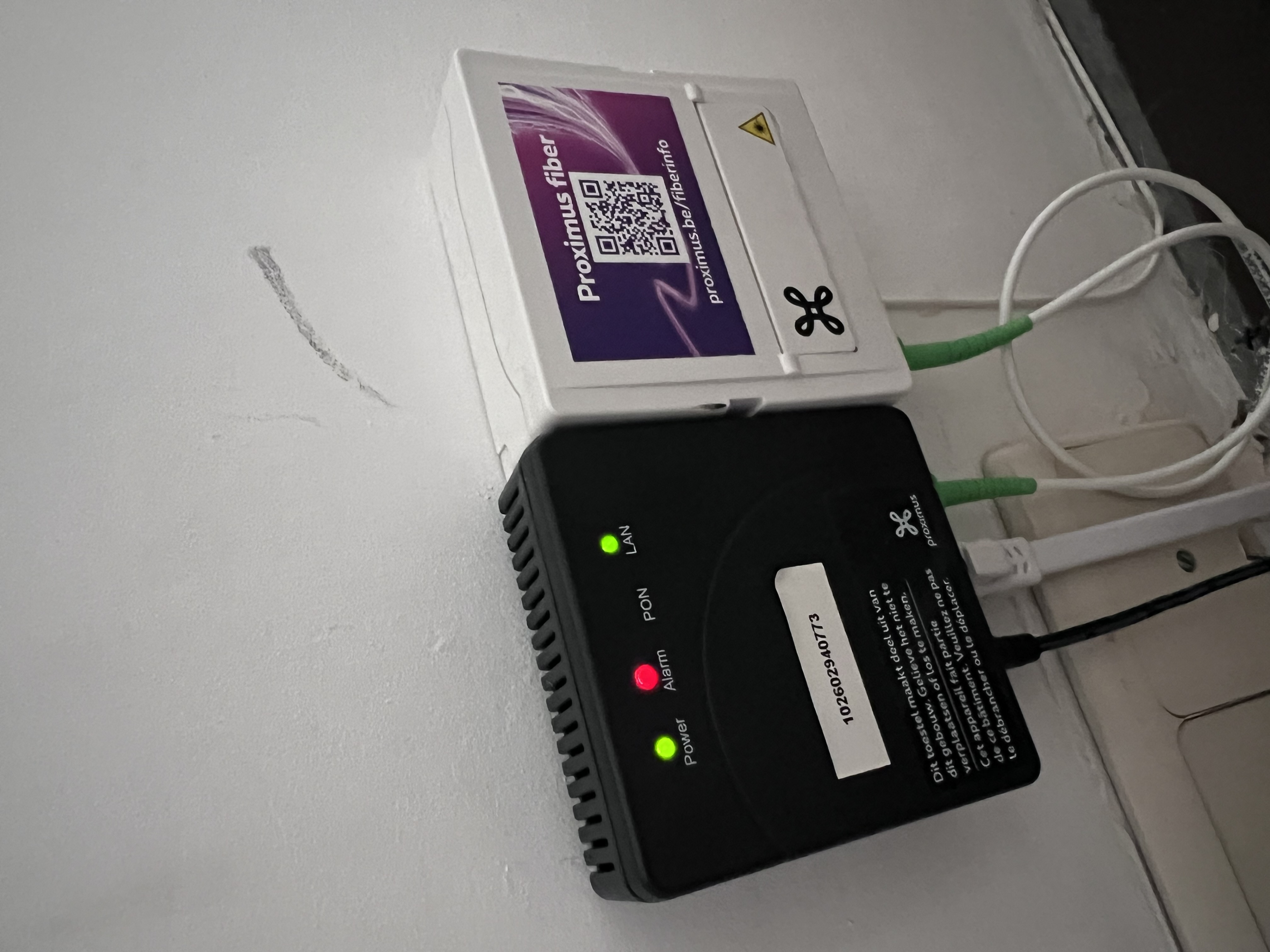 Iets wat ik kan uitlezen van de Nokia ONT? Heb geen PON signaal, dus alarm. (1030 Schaarbeek - kabel aan gevel)