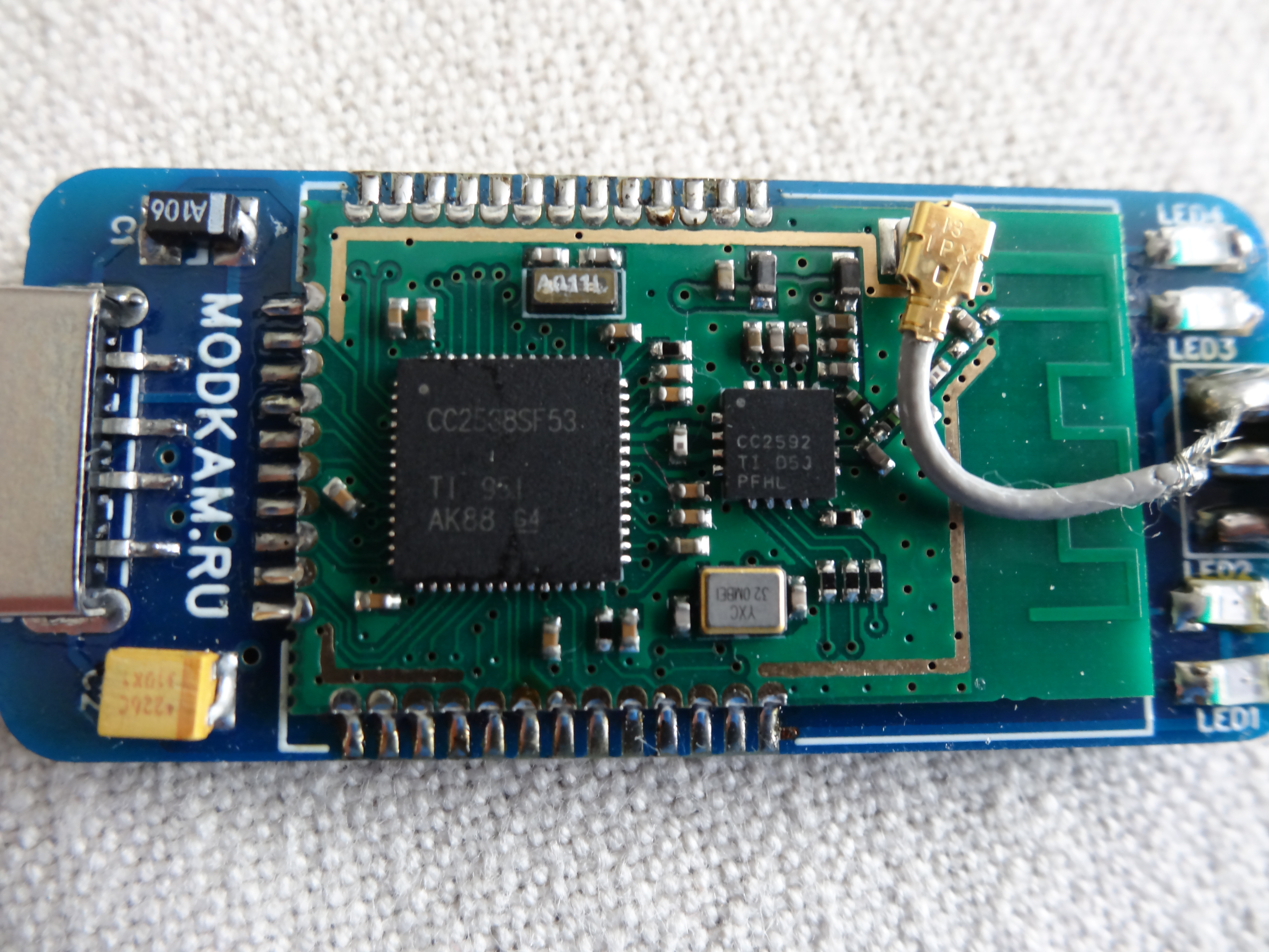 Het zijn MODKAM sticks V3 met een printplaatje die ontworpen werd door MODKAM.RU met de chipset cc2538 + cc2592