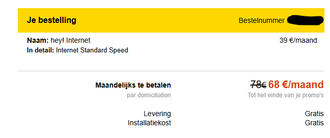 Vorig jaar in juli kreeg ik de promotie van -10 € gedurende 6 maanden op hun internetverbinding.