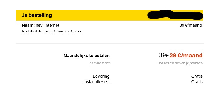 wel mailbevestiging ontvangen. Vanuit My Hey nog altijd oude promo Gisteren en vandaag wel direct binnen via 0800 (wel kalm uur gebeld) en spreken goed Nederlands (een Surinaamse, maar perfect NL)