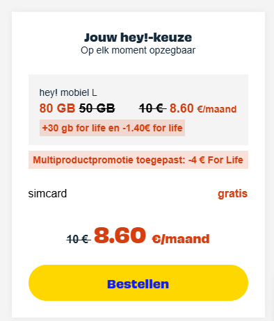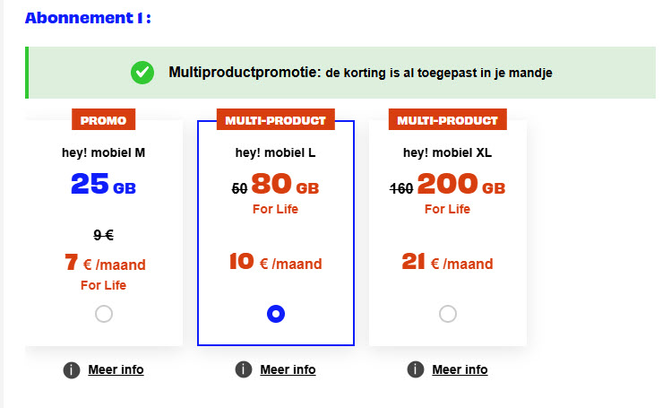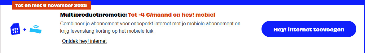 Goed nieuws! Je kunt nog steeds profiteren van de korting door een extra mobiel abonnement toe te voegen via My hey!."