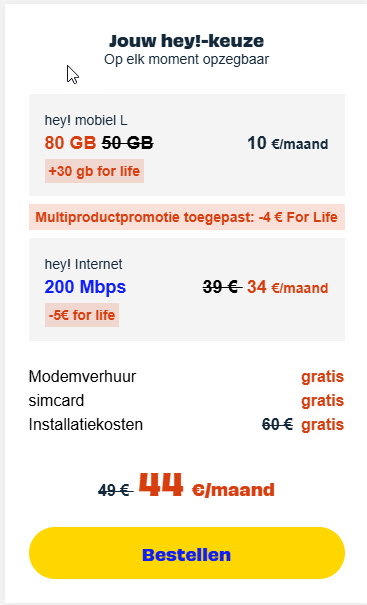 Ik heb geprobeerd om dit te bestellen, maar hun website is zo slecht en de dienstverlening trekt op niet veel. Momenteel geniet ik van een promo van Telenet, maar eens dat voorbij is zou ik misschien toch niet zo snel voor Hey! kiezen. Geen problemen gehad toen ik er klant was, maar dat Orange het zou fout laat lopen snap ik toch niet. Dit is een text book voorbeeld van enshitification.