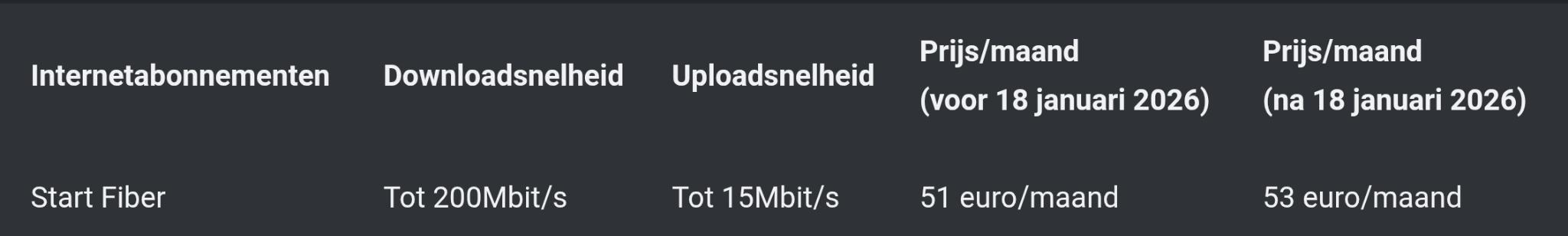 • Internet-only formules en bundels zonder mobiel stijgen met 2 tot 3 euro per maand.