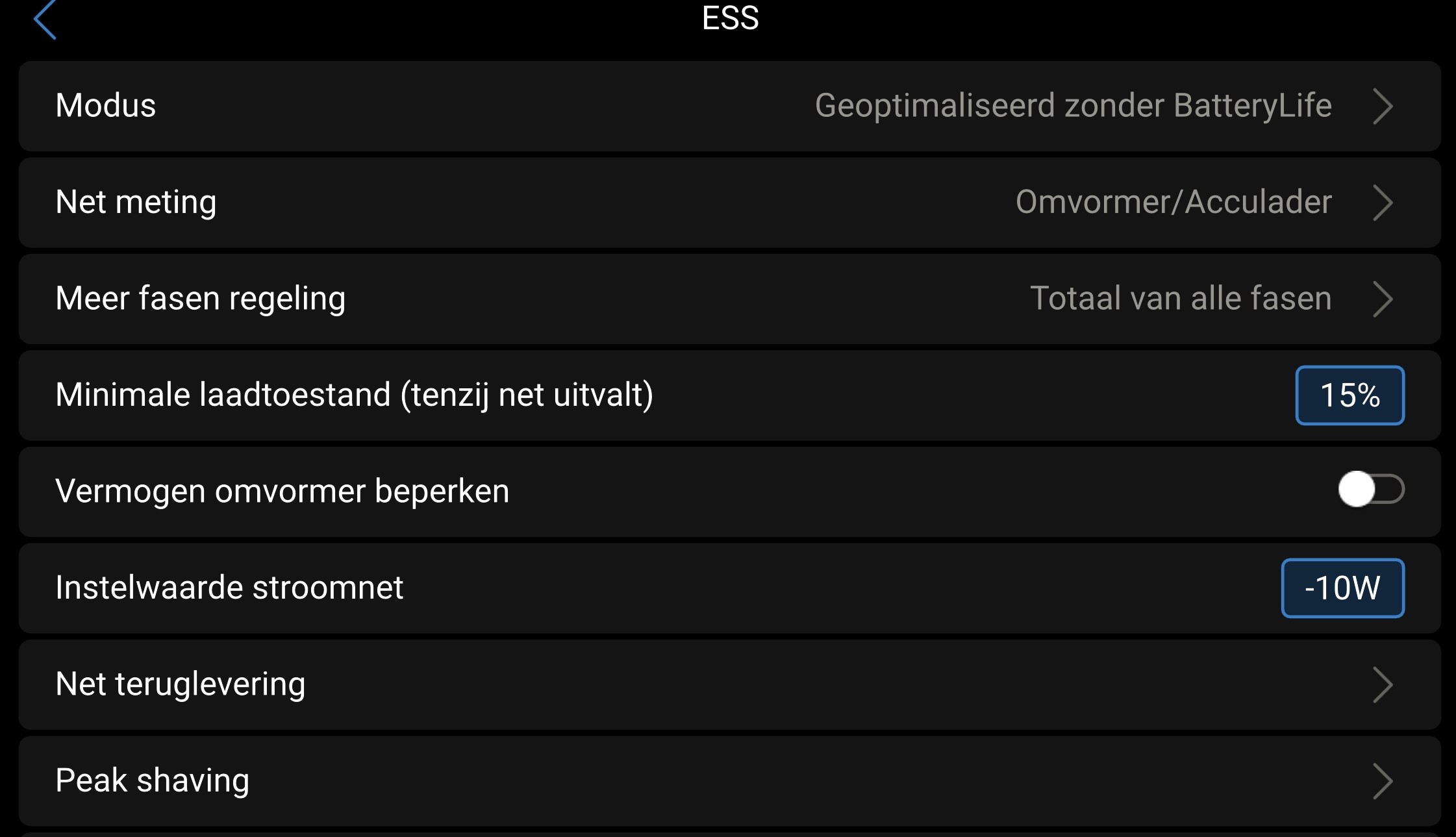 Maar ik heb een Victron omvormer met eigen VE OS dus je hebt er in se niets aan om te weten waar ik het gridsetpoint instel.