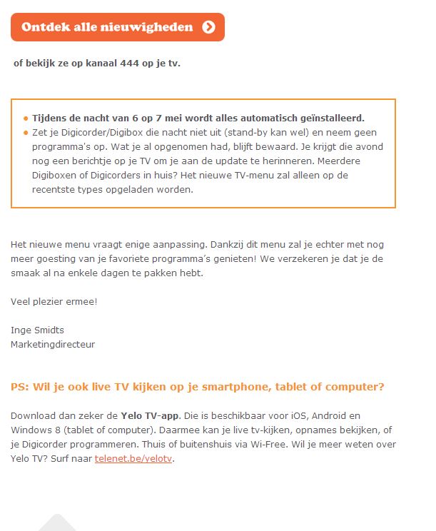 Lol @ hamontenaar, dat is om u uit te schrijven op de promomails en bepaalde comunicatie van Telenet. NIET om je uit te schrijven op de verplichte installatie van het Yelo menu. :-)