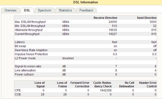 In bijlage een overzicht van de DSL infomatie, incl. de CRC fouten.