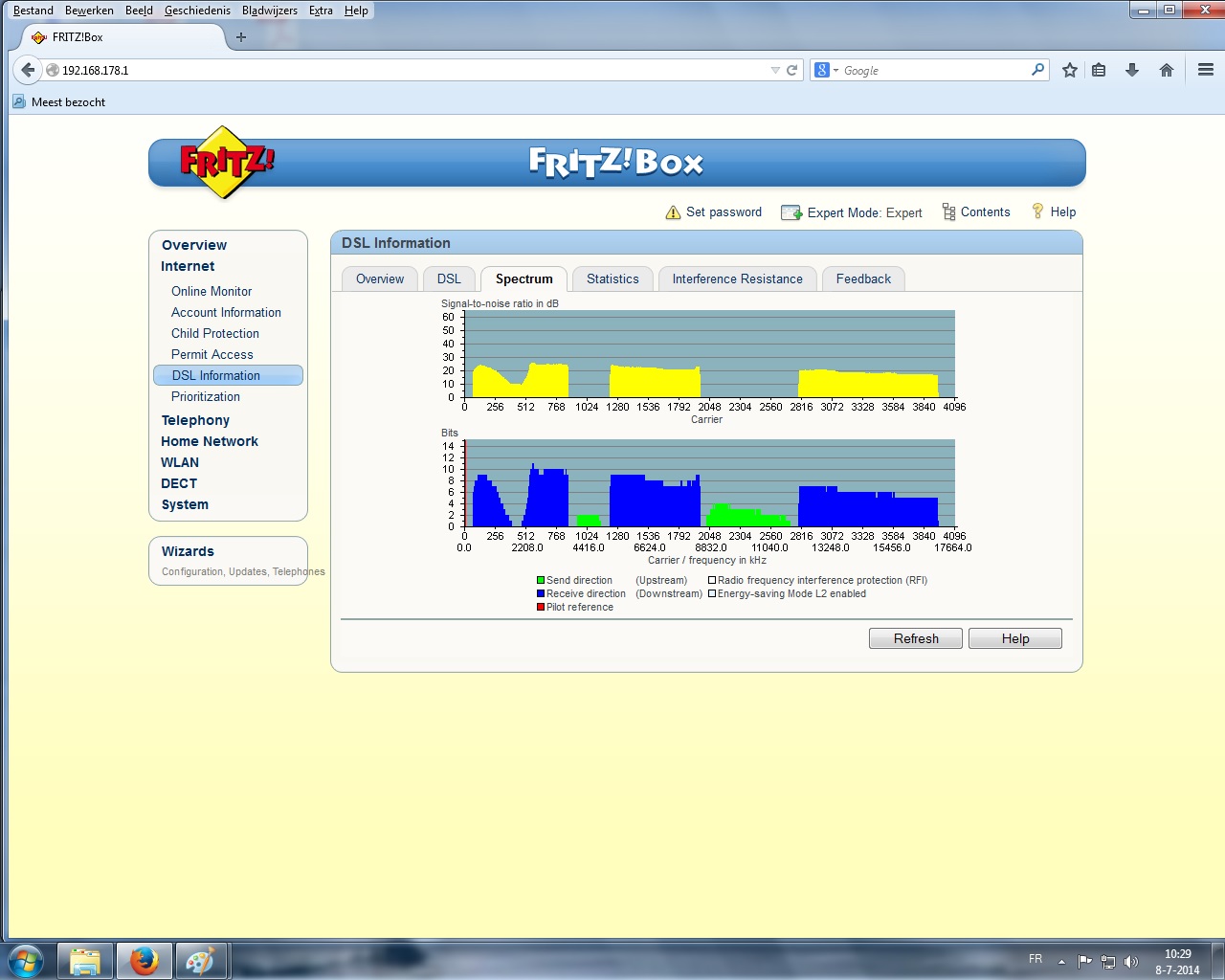 Plotseling een sterke verhoging van de noise margin van 29 naar 35 db en verhoogde haalbare lijnsnelheid naar 111 / 34 Mbps