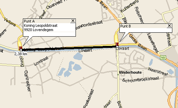 Node 1 aan de italiaan, node 2 aan de brug van lovendegem
