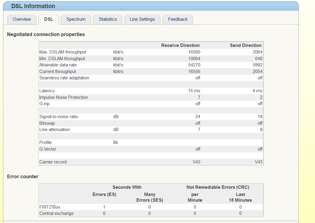 ik heb edpnet aangevraagd en wist dat ik 16,5 Mbps down, 2-3 Mbps up zou halen, dus ik ga niet klagen. Echter, Belgacom wist uiteindelijk hier niet de juiste kabel te vinden ... (oudere wijk) Ook al zal dat niks uitmaken voor de afstand tot de kast, dan vraag ik me toch af, als ik de waarden zie als leek, als ik niet iets meer zou kunnen krijgen.
