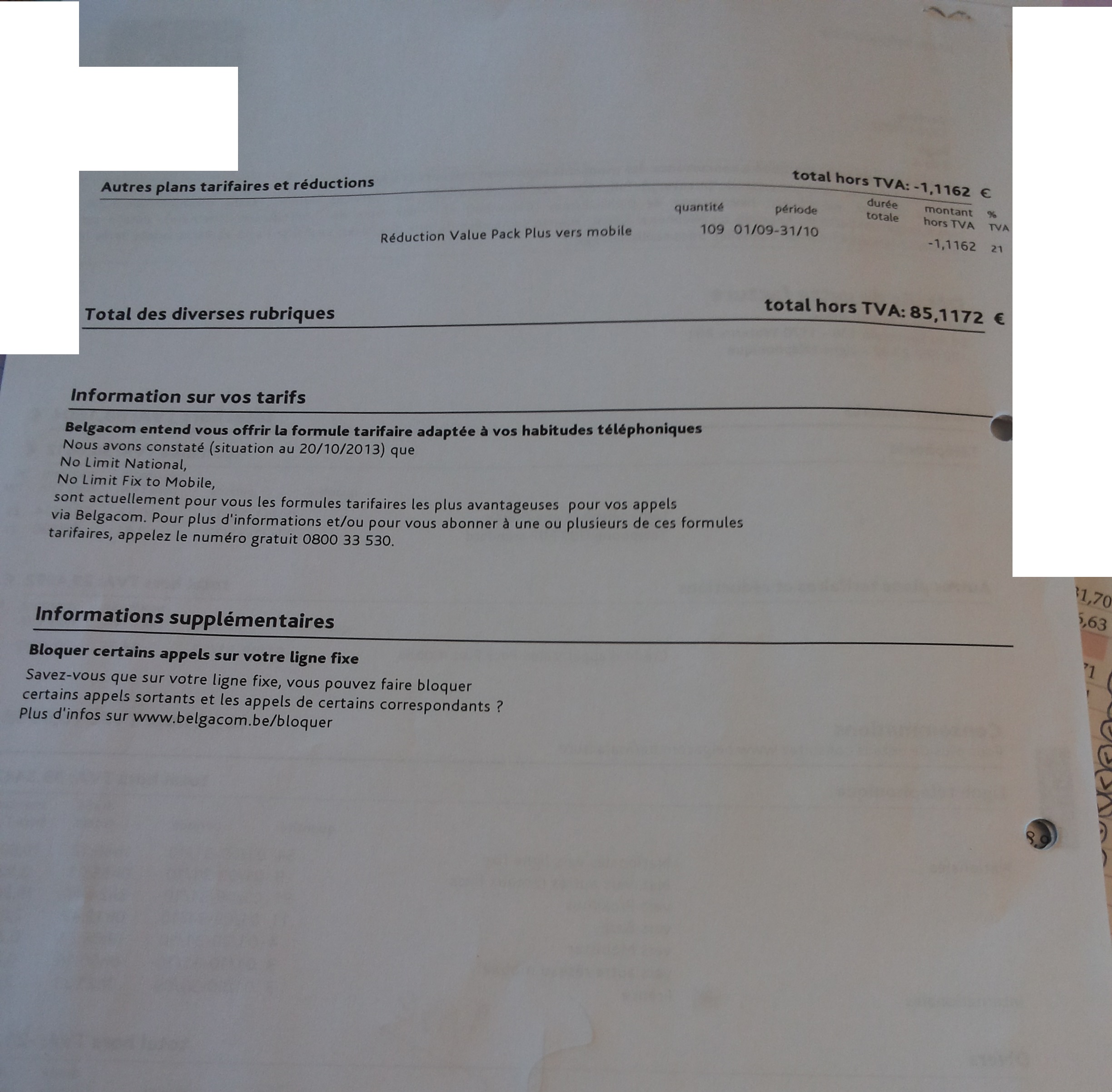 3. De optie "No Limit National" (zoals aangeprezen door Belgacom op de factuur) is ook een leugen. Dat zou je €16.00 kosten (€19.36 BTWi), maar je hebt maar voor €14.53 nationale gesprekken gehad (€17.58 BTWi). Deze optie is dus niet interessant, tenzij je sommige maanden meer belt.
