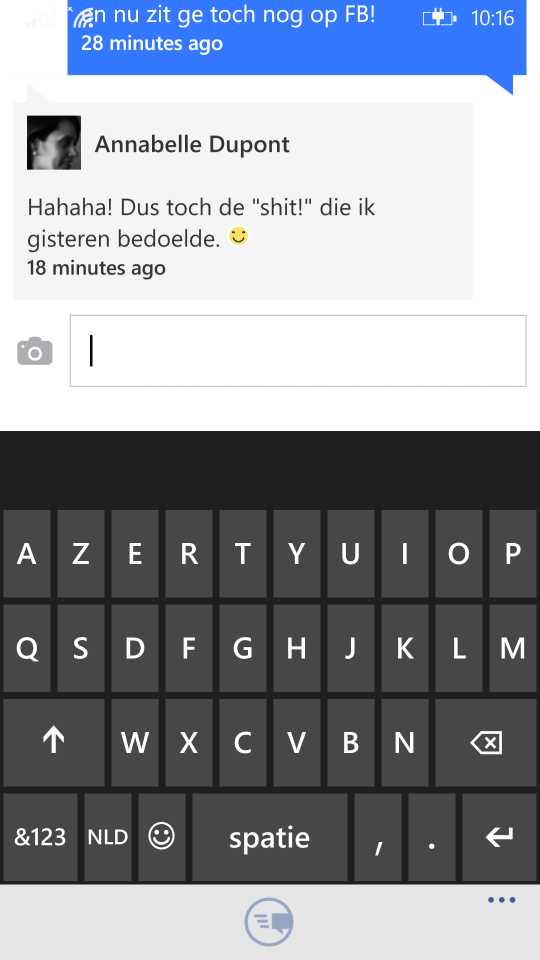 - Messages sturen in de Facebook app, dat is gewoon grappig om te zien. Je ziet het vorige bericht (gesteld dat het maar 1 à 2 lijnen was) en dan zie je een "stukje" van het bericht daarvoor. Ik heb er een screenshot van genomen, plakt hieronder. Wie kan daar nu mee werken?