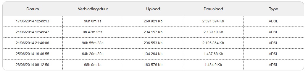 • Bij één van beiden heb ook eens in de e-services de verbindingstijden opgevraagd. Bij de disconnects van juli tonen deze een vrij grote overeenkomst, de meeste vertoonde 1à10minuten verschil met mijn verbindingstijden.