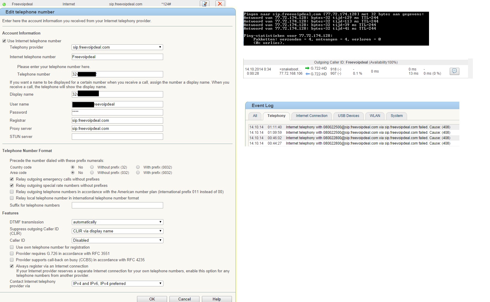 - Als ik een nieuw freevoipdeal account aanmaak en toevoeg krijg ik direct een aansluiting met de melding dat ik geen krediet heb terwijl met het account waar wel credit opstaat hij blijft proberen en dan de melding krijg op mijn fritzfon "no user responding".