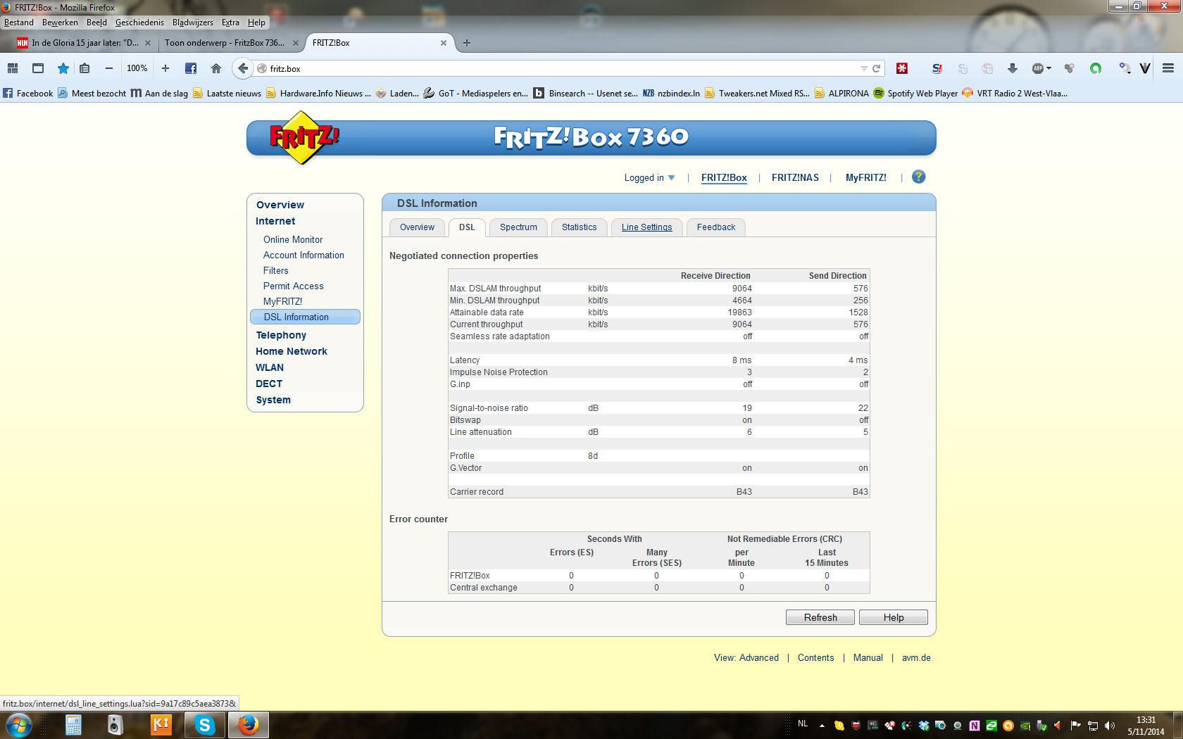 Update: vandaag heb ik de FB7390 bijgewerkt naar OS 6.20 (de finale versie; met beta hou ik me niet bezig). Na de reboot kwam ik terug op 20/2, maar een uur later werd er een disconnect geforceerd en nu sta ik dus op het beruchte fallback profiel. Vreemd genoeg is het niet aan 7/0,5, maar aan 1,7/0,5. :eek: