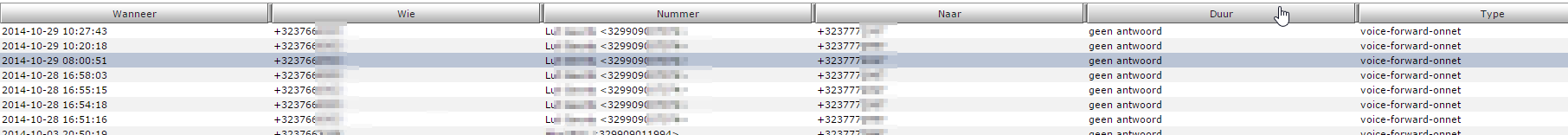 Als ik in de interface van 3starsnet kijk, wordt de telefoon niet afgeleverd bij 3starsnet. Als ik in de interface kijk bij WeePee, zie ik daar alle gemiste oproepen staan van die persoon.