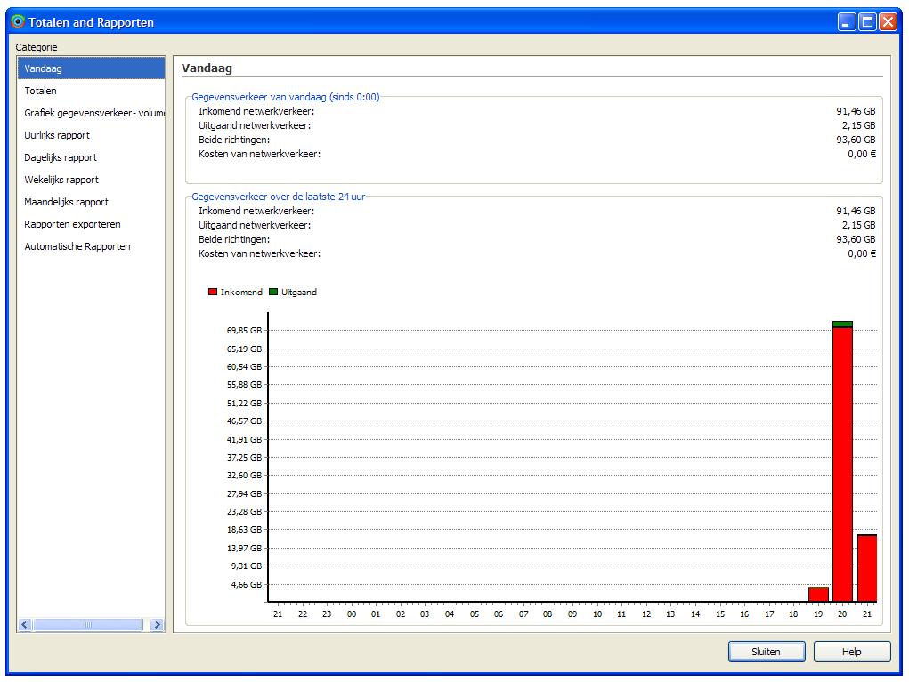 Tussen 20 en 21 uur vlot 75GB