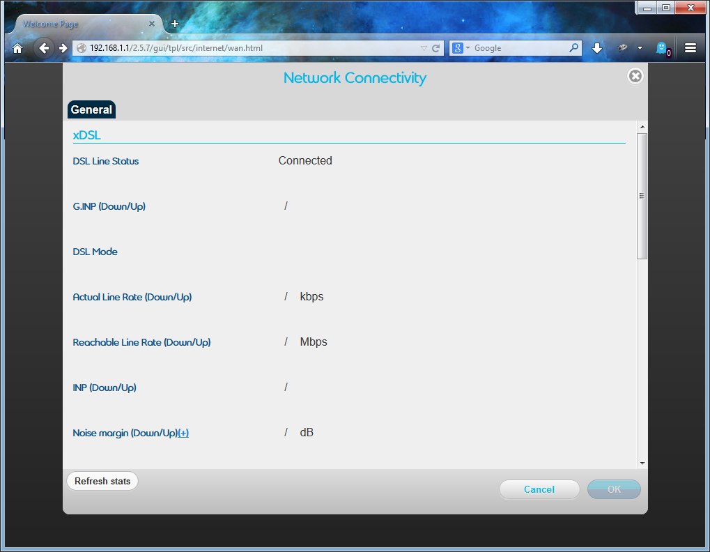 7. verander de url manueel naar http://192.168.1.1/57../gui/tpl/src/internet/wan.html, nu krijg je de wan pagina te zien, maar deze is leeg