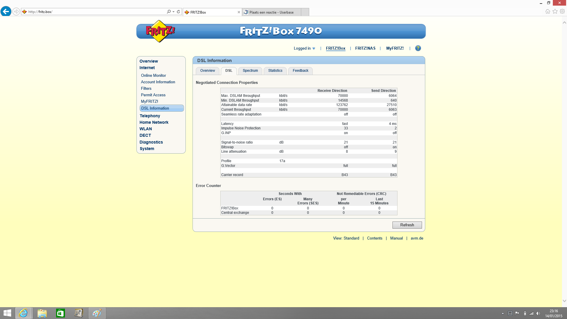 Ik heb een vraagje, ik was in het controlepaneel van men Fritzbox aan het kijken en zag een boel errors bij de DSL informatie. Is dit iets waar ik me zorgen over moet maken?