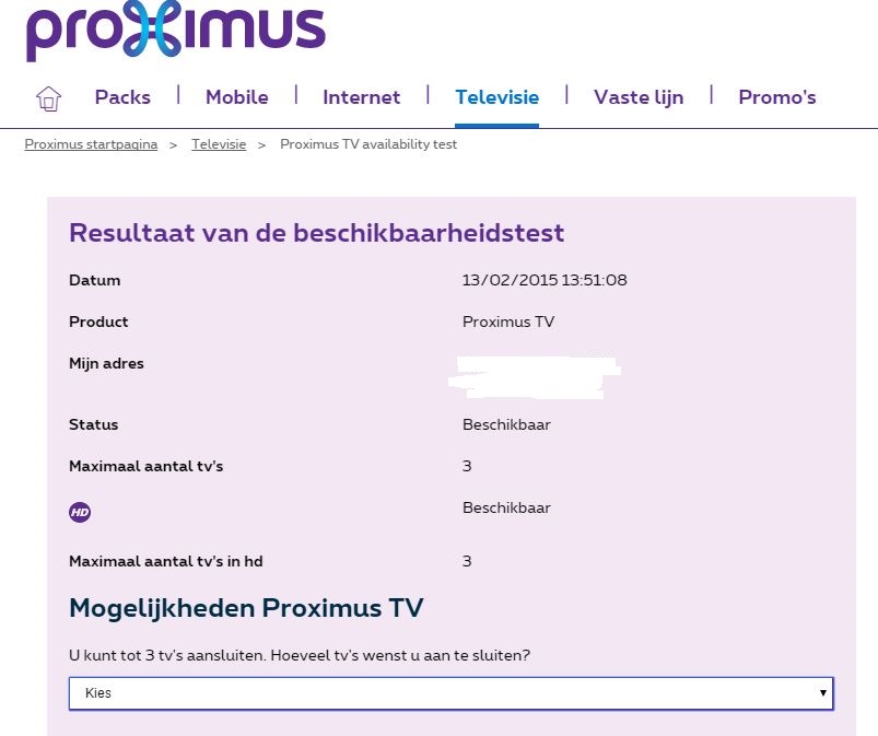 Ik zou die link toch maar eens gebruiken: het eerste scherm is identiek aan dat van de test die je nu gedaan hebt (= de TV beschikbaarheidstest), maar het 2e scherm met de resultaten is helemaal anders. Daar krijg je de gegarandeerde minimumsnelheid en de mogelijke maximumsnelheid voor een bepaald adres of telefoonnummer te zien. Je moet ons niet geloven, maar als je de snelheden op je adres wil kennen, zou ik de link toch eens aanklikken