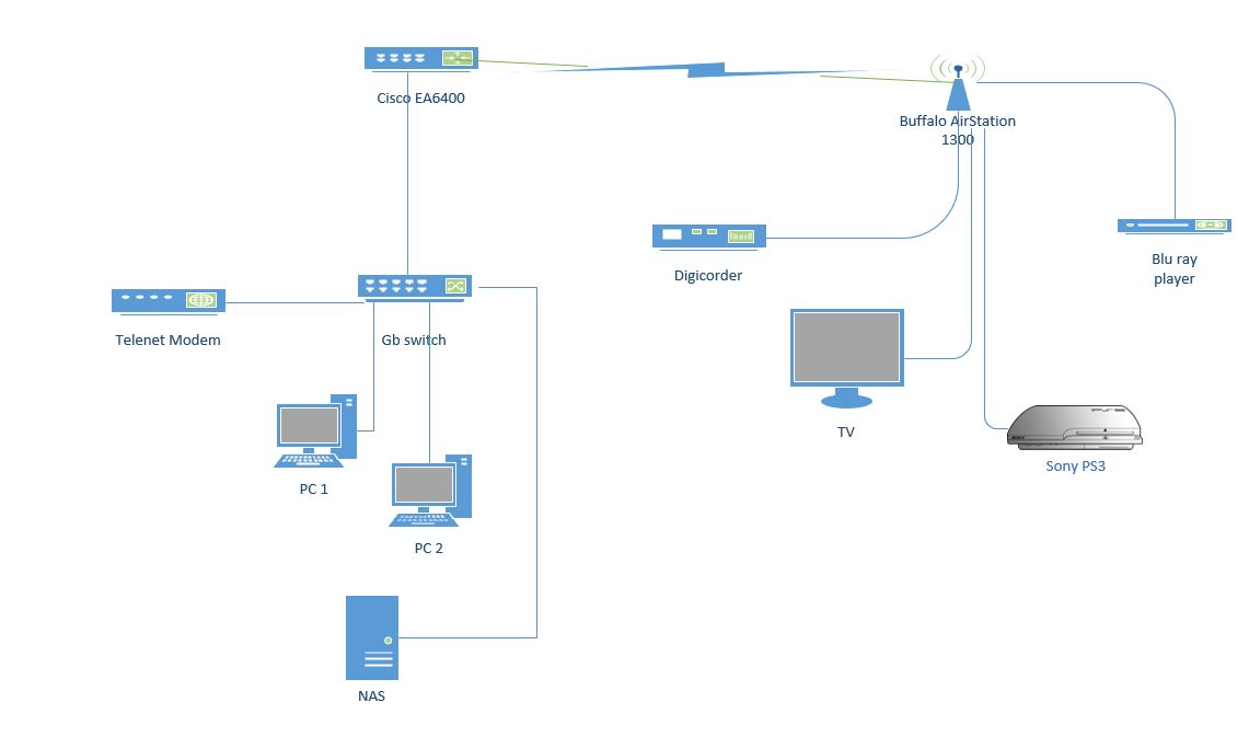 Mijn Telenet Digicorder is via een AC-bridge verbonden met mijn Telenet modem (zie bijlage).