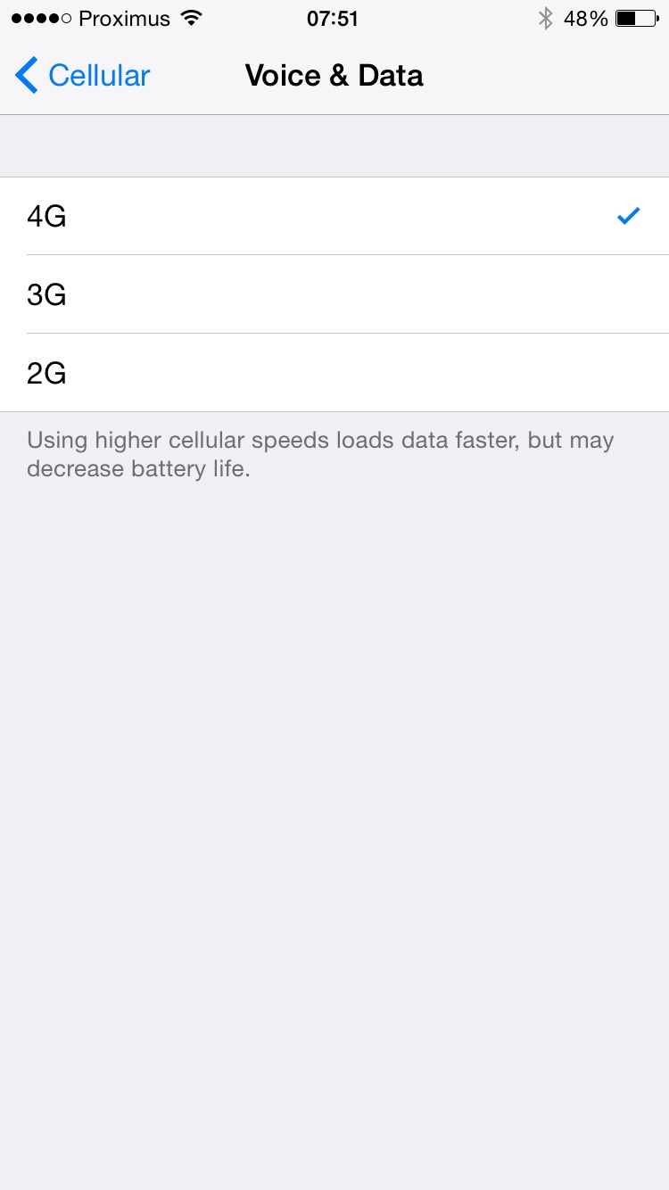 Ik dacht dat ze dit in iOS 8 opgeslot hadden (keuze tussen 2G, 2G & 3G of 2G, 3G en 4G) maar daarvoor moet je provider blijkbaar een nieuwe carrier bundle uitbrengen.