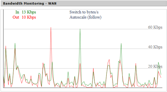 En enkel HTTP gaat lijk vooruit (de groene spikes), al de rest gaat als een slakkengangetje ....... en de live WAN grafieken in DD-WRT lijken dit dus te bevestigen:
