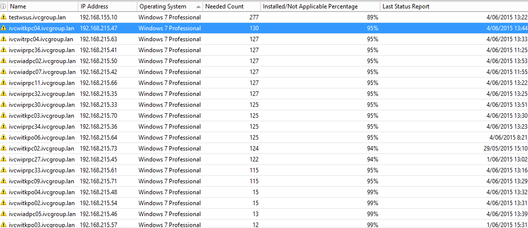 @Starwing: Ofwel zitten we op een andere golflengte, maar in mijn eerste post staat een printscreen van de WSUS console met Computer view. Daar kan je zien dat alle computers bij "Needed Count" een hele reeks updates nodig hebben.