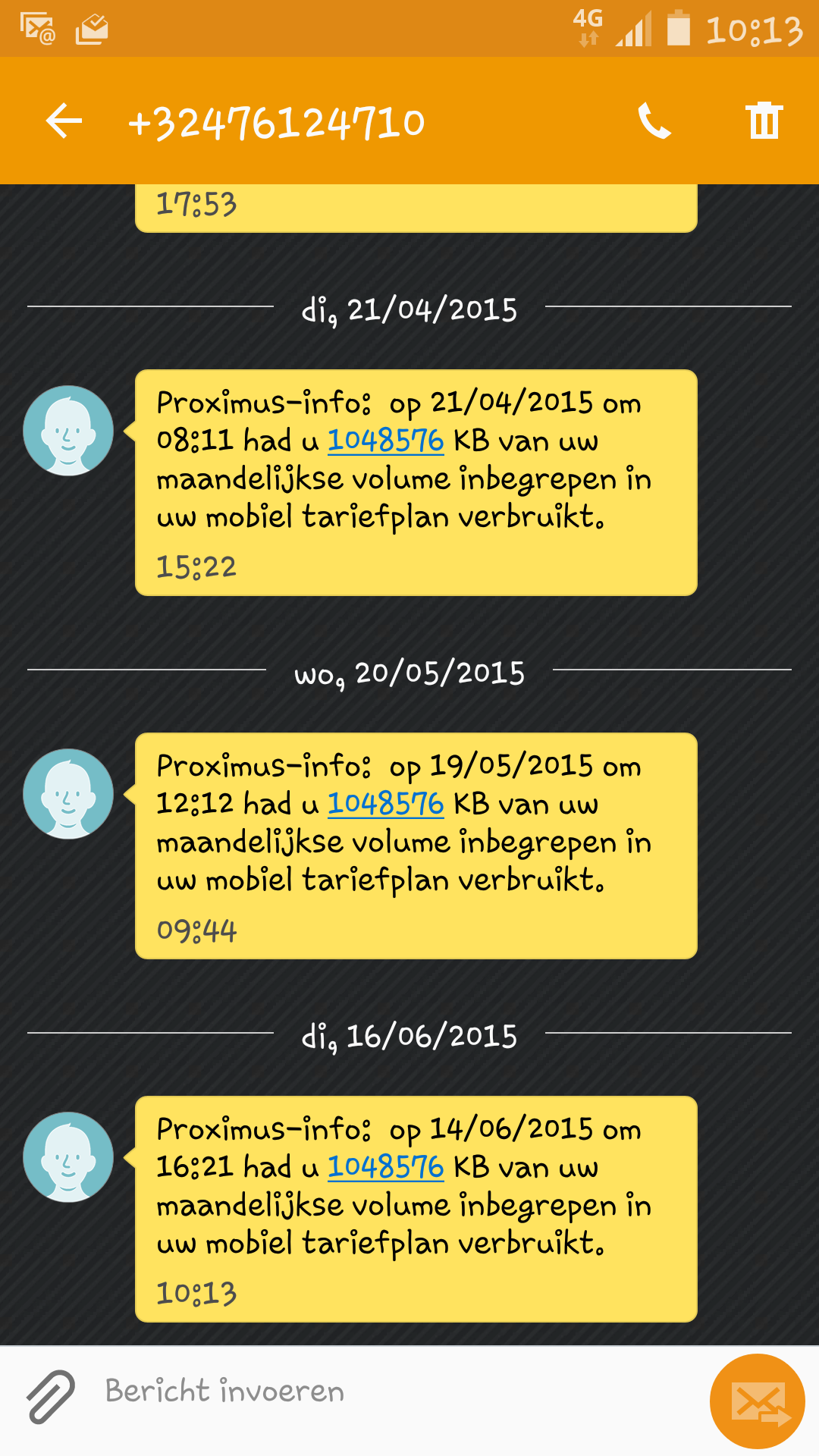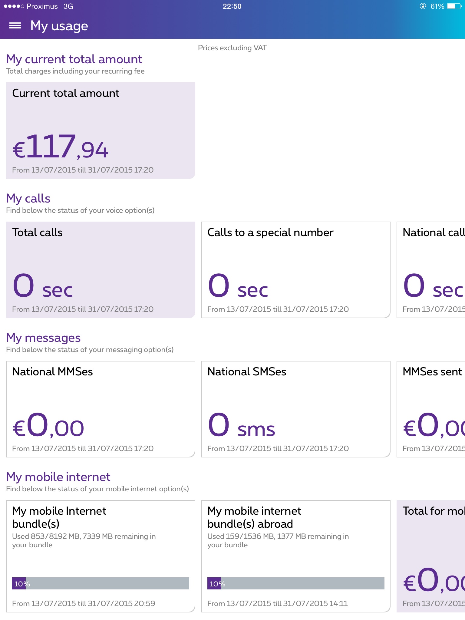 Die MyProximus app kan je zelfs niet gebruiken indien je een corporate simkaart hebt. Plezant als je aan het tetheren bent bij een klant en je die SMS veel te laat aankrijgt. Al een geluk dat smartphones hiervoor de nodige statistieken bijhouden per maand.