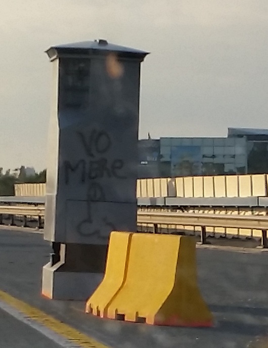 Eén van de borden voor de werken was al omgedraad trouwens, dus op dat stukje gold de limiet van 70km/h per ongeluk al