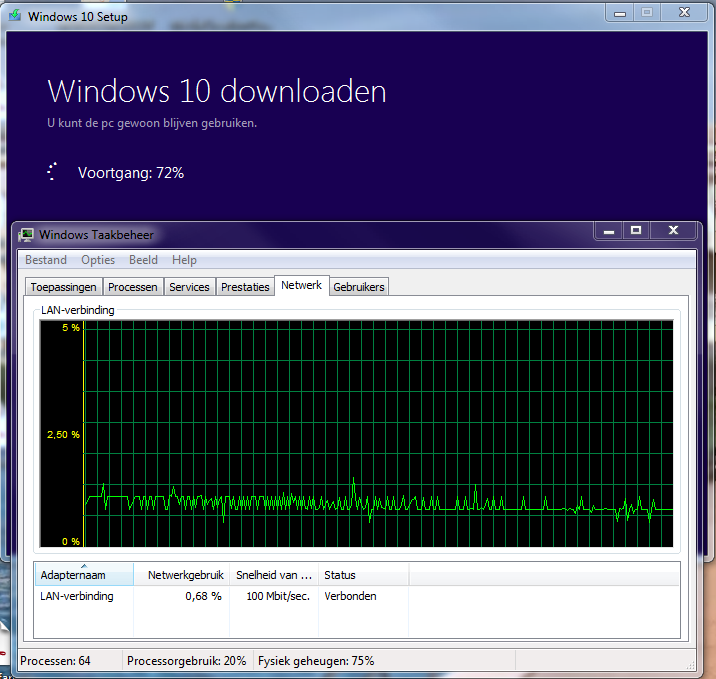 Sedert deze voormiddag bezig met Windows 10 te downloaden