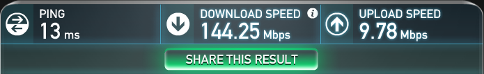 Dus alles terug in orde, upload nu zeker 50% sneller, en download van 115 naar 145 mbit.