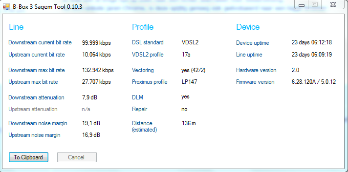 Dat waren dus wel heel normale (maar goede) lijnwaarden:Steven_09 schreef:Dat lijken me toch vreemde waarden: de MAX down waarde lijkt duidelijk te suggereren dat je vectoring hebt, maar bij mijn weten is 30/10 -nog- geen vectoring profiel. Je zou eerder 50/10 of 70/10 moeten hebben.
