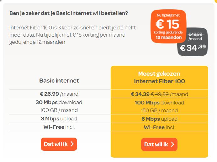Ik zie de promo nog wel. Als je Basic Internet probeert te bestellen, proberen ze je eerst nog over te halen naar het hogere product door middel van een pop up.