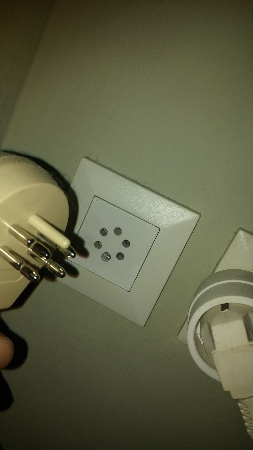 Nu laat mijn schoonmoeder mij doodleuk weten dat ze op de tweede verdieping nog een vijf-polige contactdoos hebben die vroeger wel degelijk gebruikt werd. Ik vermoed dus dat er nog een aftakking is vanuit de living, met alle gevolgen vandien. Dat ga is dus straks eens bekijken. Wordt vervolgd...