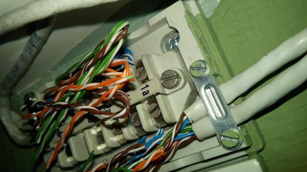 - in het 2de kastje: het koperpaar dat van het blauwe kastje komt, doorverbinden met het paar naar de NTP2007: je kan ook gewoon de bestaande klemmen gebruiken, zolang je er maar voor zorgt dat er geen andere aftakkingen zijn.