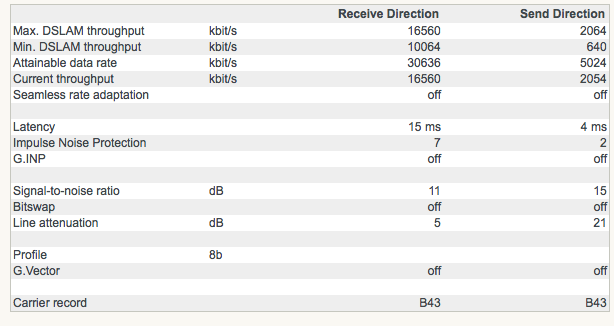 Wat voor waarden krijg jij bij een automatische lijntest? Bij mij maakt hij eerst 2 keer connectie op een 16/0,9 verbinding. Daarna valt hij op 7/0,5..