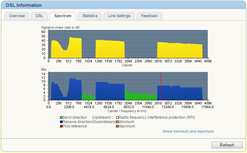 Wat voor waarden krijg jij bij een automatische lijntest? Bij mij maakt hij eerst 2 keer connectie op een 16/0,9 verbinding. Daarna valt hij op 7/0,5..