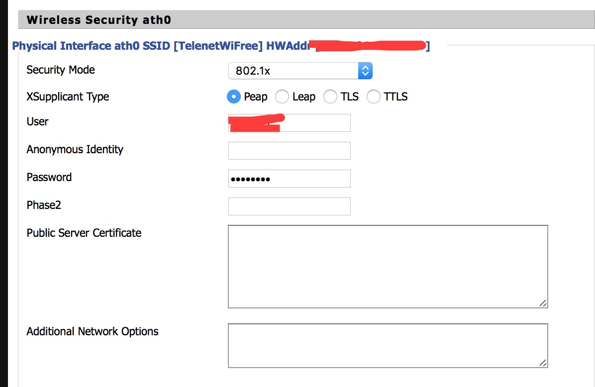 Kies eerst voor Client mode op de wireless en vul de naam in van de hotspot waarmee je je wil verbinden. Let op dat je de spelling exact goed hebt. In mijn geval is het een Fon hotspot van SFR.