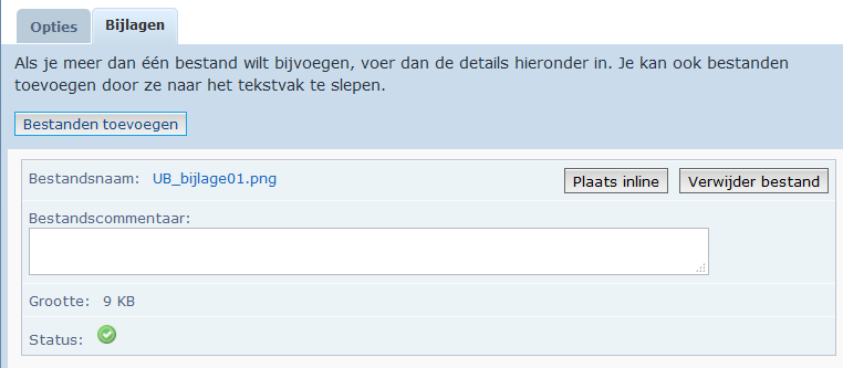 - de cursor in je bericht plaatsen waar je wil dat het bestand verschijnt