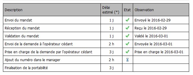 Als ik daarna «portability in progress raadpleeg, merkt ik dat de toestand - nu al 2 dagen - vastzit bij «Ajout du numéro dans le manager». Volgens hun eigen ramingen zou dit 2 u moeten duren, maar het gaat hier niet echt vooruit.