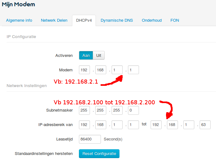 Klik dan op "Mijn modem" en dan op het tabblad "DHCPv4".