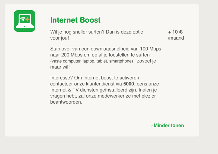 Boost optie in Wallonië = 15euro. (Vlaanderen 10€ zoals hierboven vermeld).