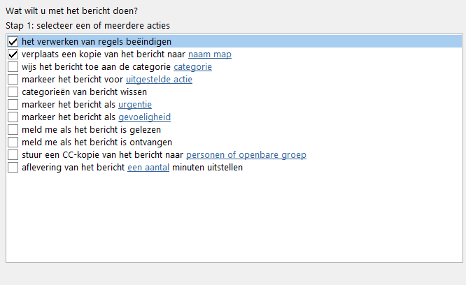 Weet er iemand hoe je de volgende regel kan aanmaken in outlook 213 ?