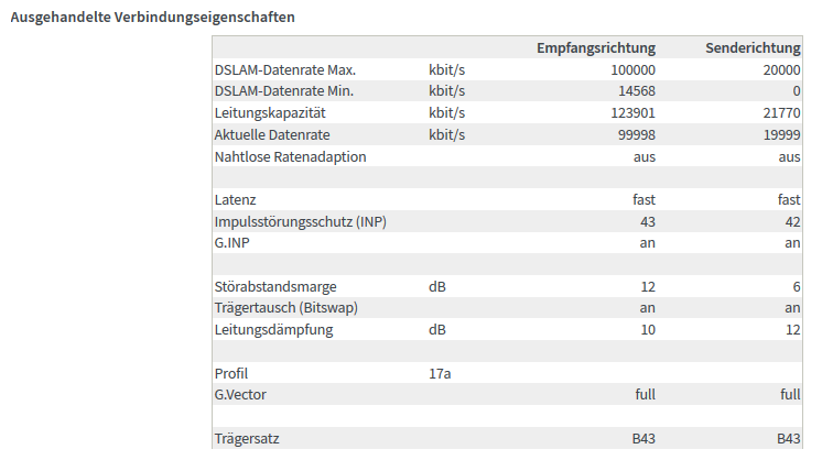 serialchiller schreef:Even inpikken op het "Annex A"-verhaal. Zat op "Annex B" met een 100/20-profiel en een Up-SNR van 7. Toch syncte mijn FB7490 "maar" 19.5Mbps in de upload... Daarom eens naar Annex A geswitcht.... Marginale verschillen in waarden, maar wel de full 20 Mbps nu...