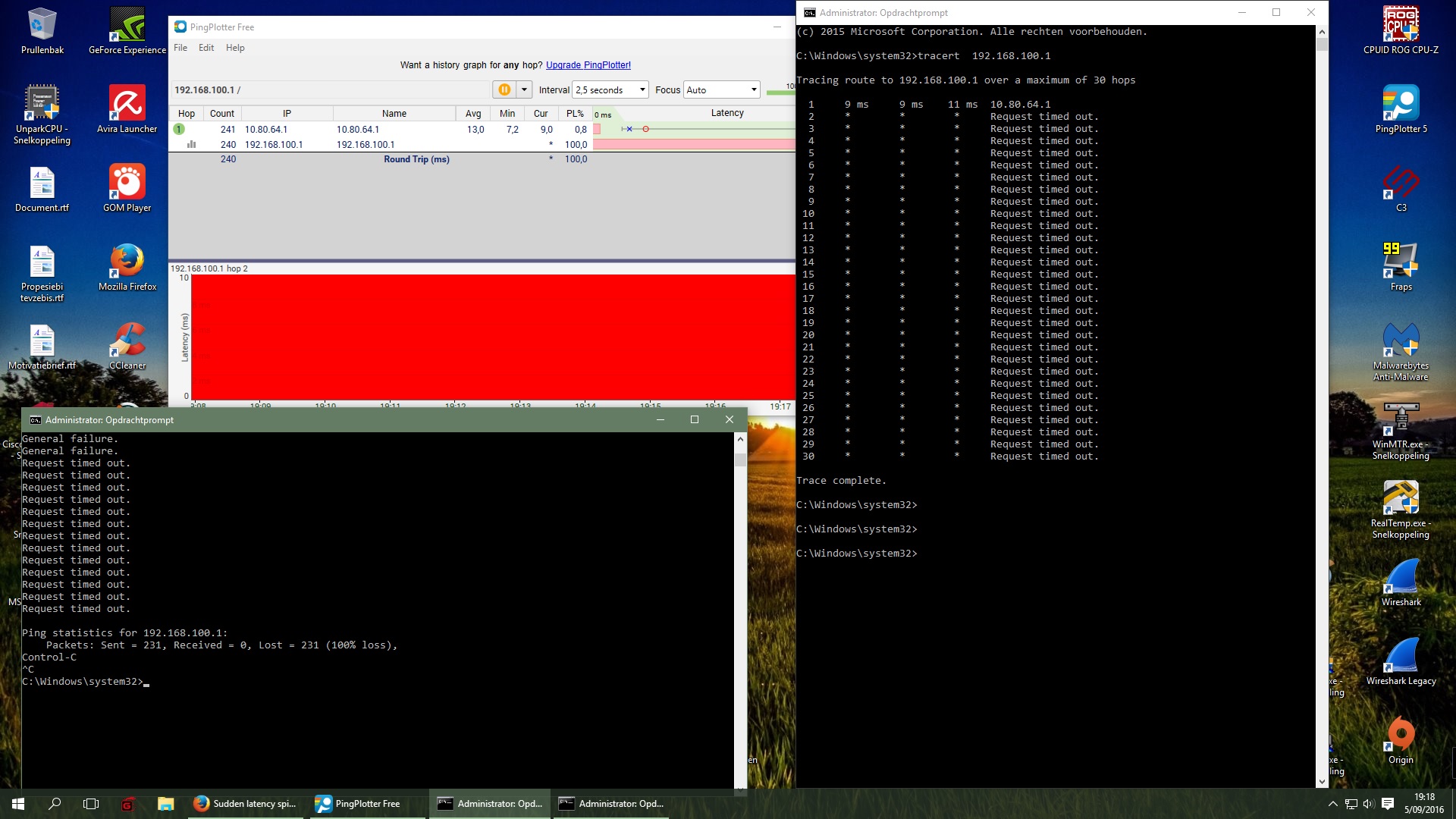 Er is maar een pc en die is de mijne. Als ik router aansluit en de laptop ook test, ik krijg daar ook dezelfde resultaten (packet loss).