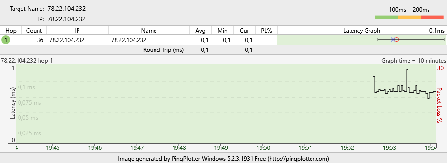 Deze pingtest toont wisselvalige resultaten aan, soms packet loss soms niet, afhankelijk van server i guess.